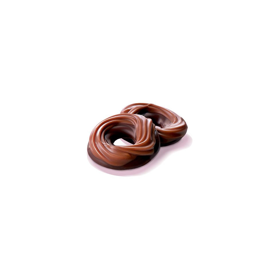 Czekoladowe precelki w mlecznej i deserowej czekoladzie.